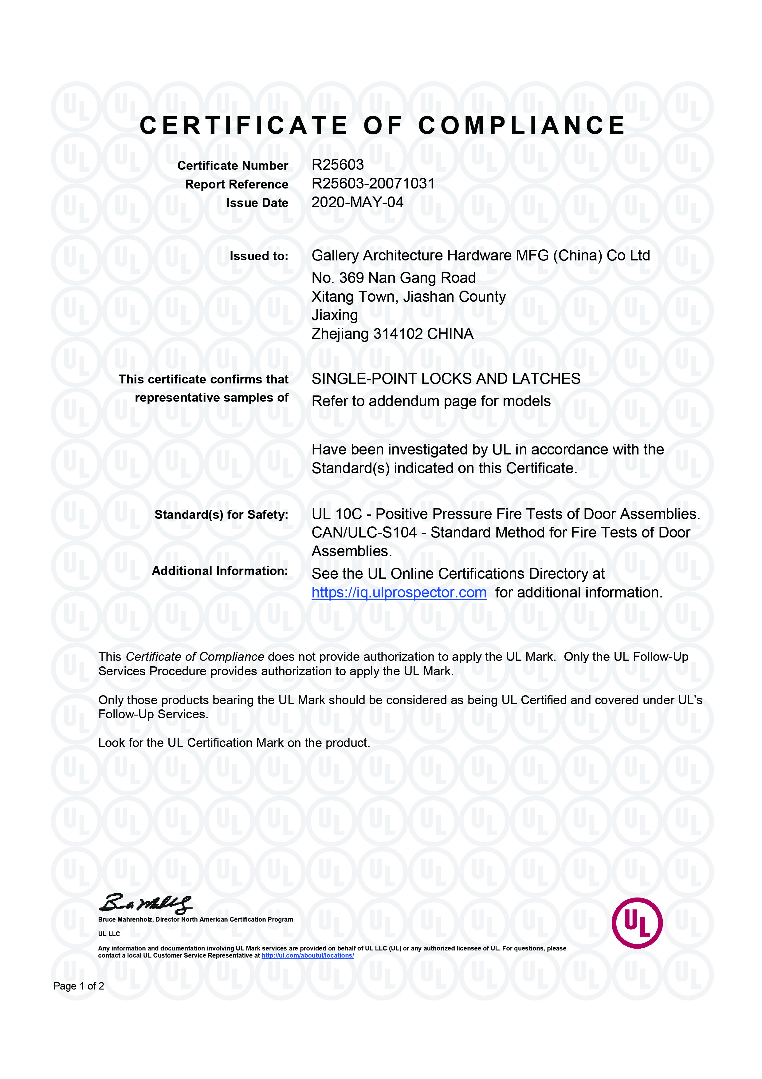 浙江堅迪五金制造有限公司始建于 1995 年。自 2003 開始,公司致力于高標準商業(yè)鎖的研發(fā)工作,并于 2006 及 2007 年,8700 插芯鎖系列獲得美國國家標準 ANSI A 156.13-2005 一級、ANSI A 156.2-2003 二級和美國 UL 10C3 小時防火測試認證。自 1998 年以來,公司不斷提升產(chǎn)品和客戶服務(wù)品質(zhì),并獲得了 ISO 9001 的認證。